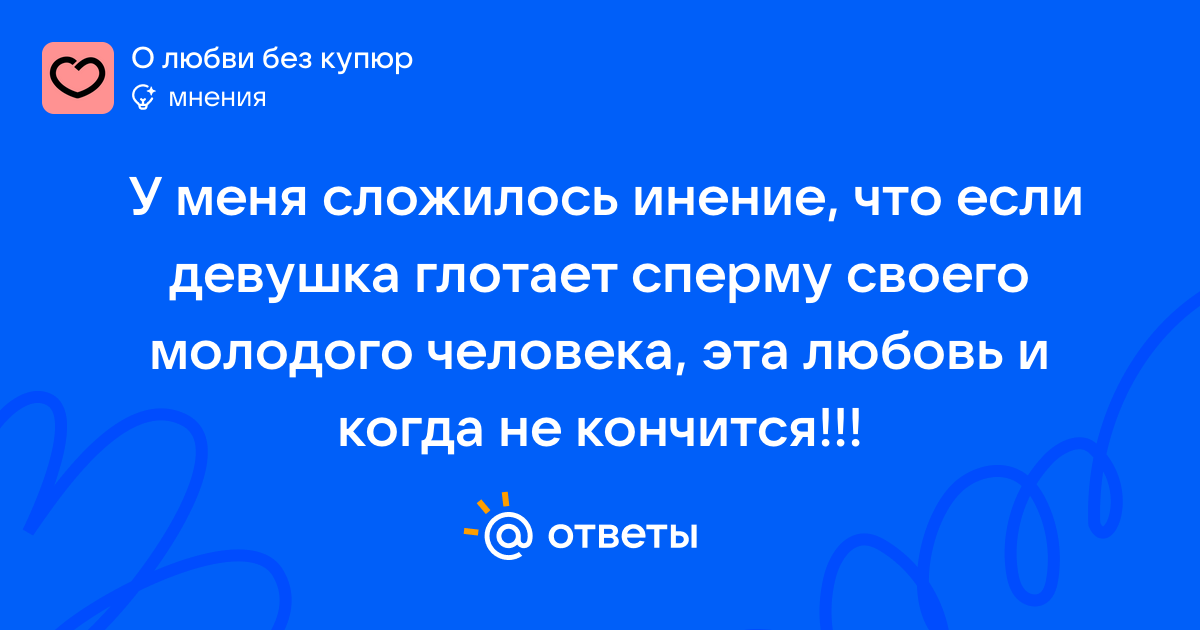 У меня сложилось инение, что если девушка глотает сперму своего молодого человека, эта любовь и когда не кончится!!!