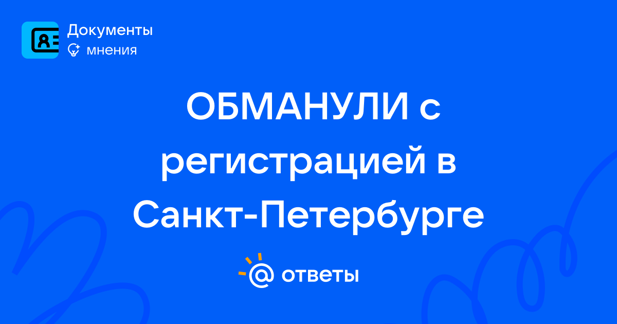 ОБМАНУЛИ с регистрацией в Санкт-Петербурге