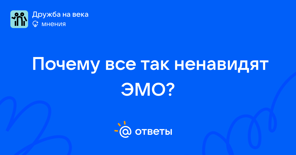 потому, что половино пазеров, которые и историю про эмо незнают, что уже можно сказать про одежду. Если стоит эмо розово-черный и говорит, что он эмо бой не учитывая того что эмо бой черно-белый и таких случиев оч много. Мне кажется толька по этому. А так если пообщется не с пазерами, люди как люди, толька со свойми непрывычными для общества тараканами :)