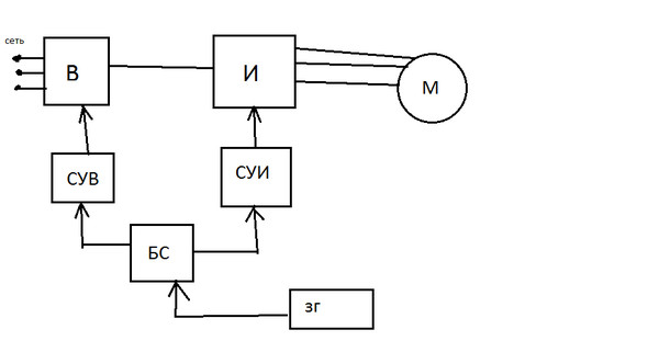 Необходимо реализовать систему управления для выпрямителя и инвертора в данной схеме, что бы работало ШИМ. Из чего будет состоять СУВ и СУИ и БС и ЗГ? Схему дал преподаватель. Если можно - ответ максимально подробный, схемы приветствуются. Нужна ли доработка схемы? С чем сравнивается в БС Uзадания из ЗГ?