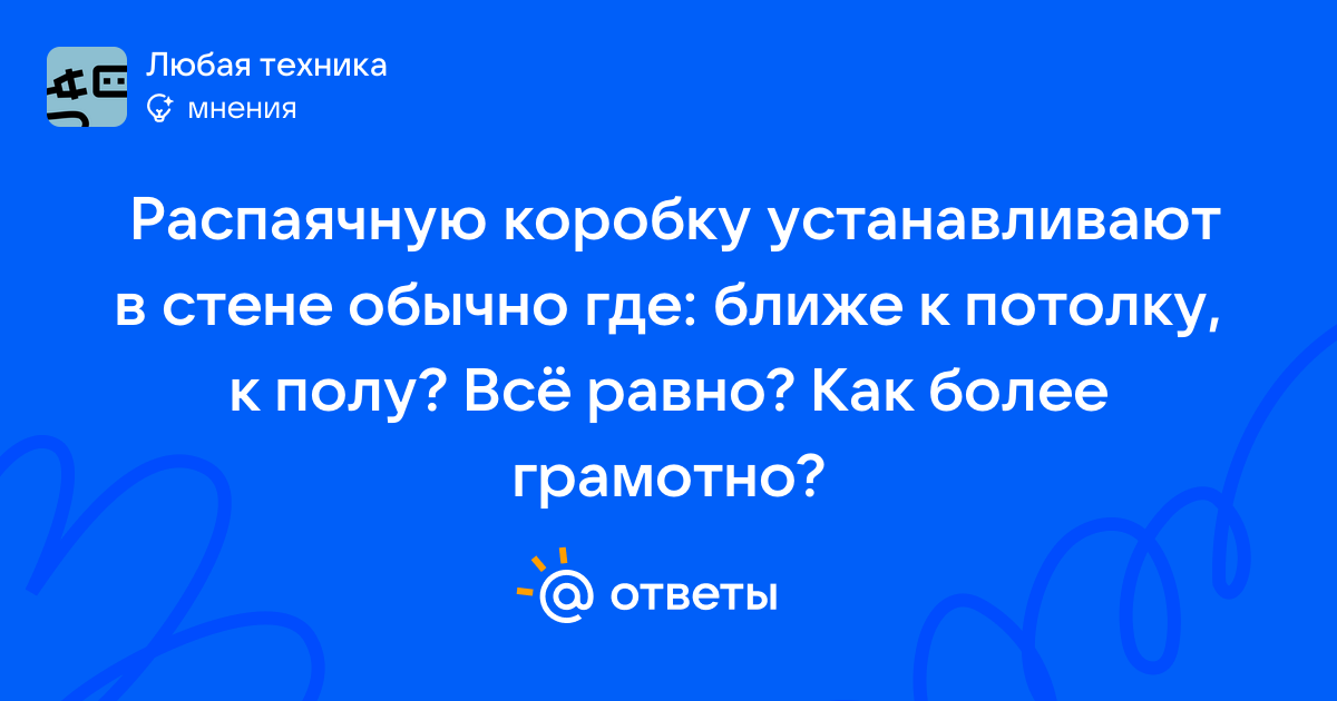 Распаячную коробку устанавливают в стене обычно где: ближе к потолку, к полу? Всё равно? Как более грамотно?
