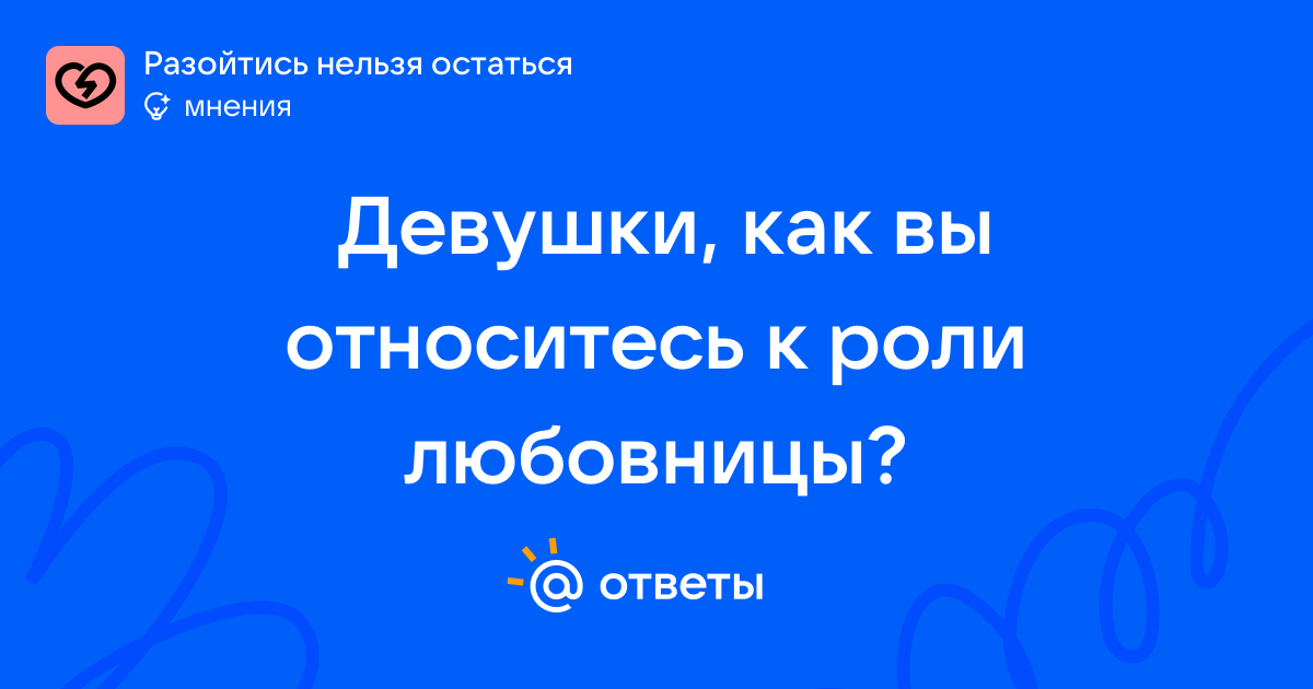 Девушки, как вы относитесь к роли любовницы?