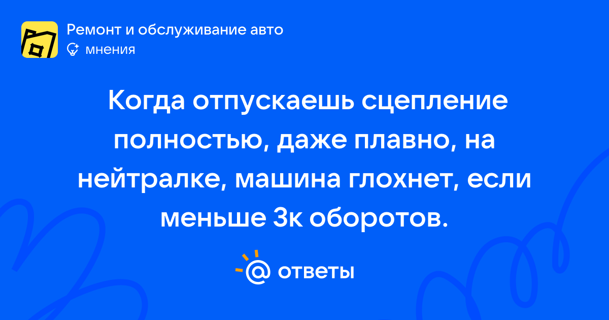 Когда отпускаешь сцепление полностью, даже плавно, на нейтралке, машина глохнет, если меньше 3к оборотов.