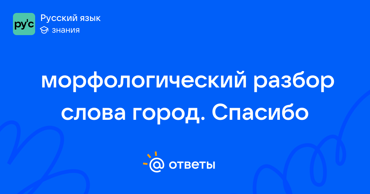 Город - что? - имя существительное, в начальной форме. Постоянные признаки: неодушевленное, нарицательное, 2 склонение, мужской род, конкретное. Непостоянные признаки: именительный падеж, единственное число. В предложении подлежащее