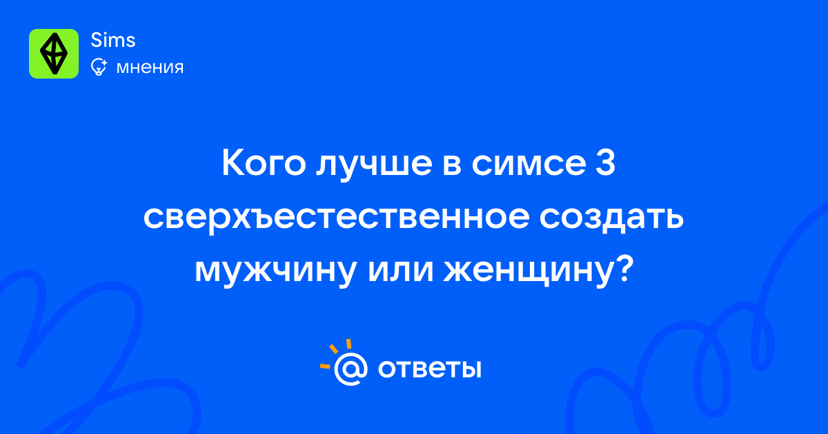 Кого лучше в симсе 3 сверхъестественное создать мужчину или женщину?