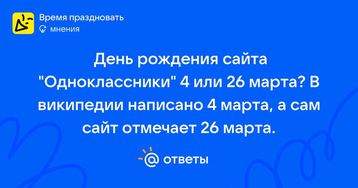 День рождения сайта "Одноклассники" 4 или 26 марта? В википедии написано 4 марта, а сам сайт отмечает 26 марта.