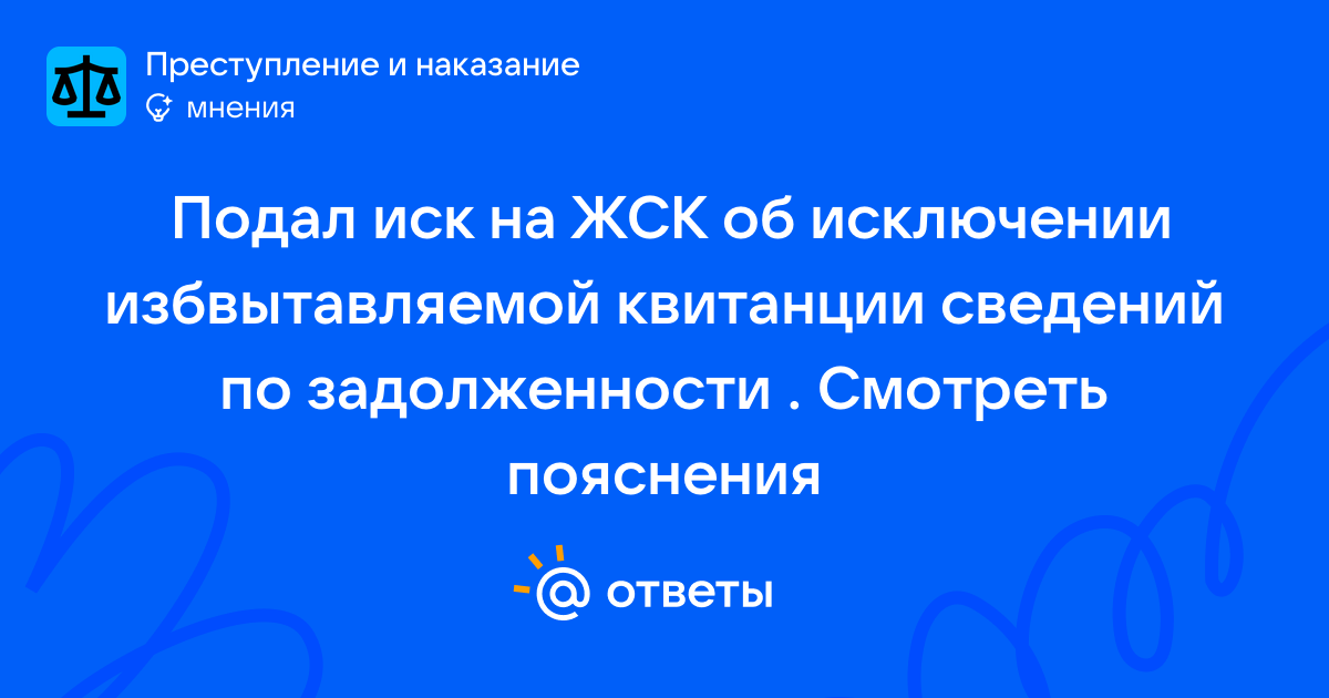 Подал иск на ЖСК об исключении избвытавляемой квитанции сведений по задолженности . Смотреть пояснения