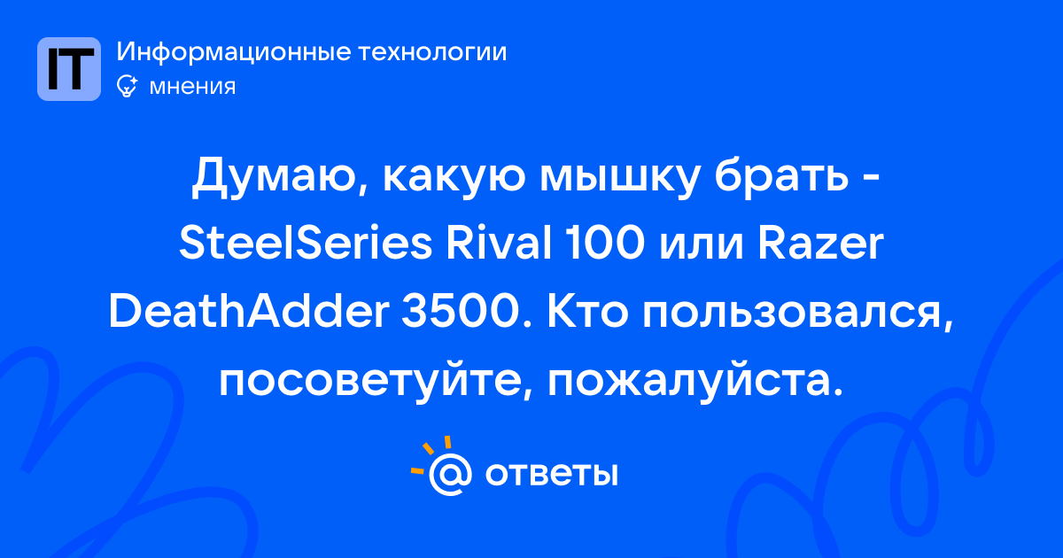 Думаю, какую мышку брать - SteelSeries Rival 100 или Razer DeathAdder 3500. Кто пользовался, посоветуйте, пожалуйста.