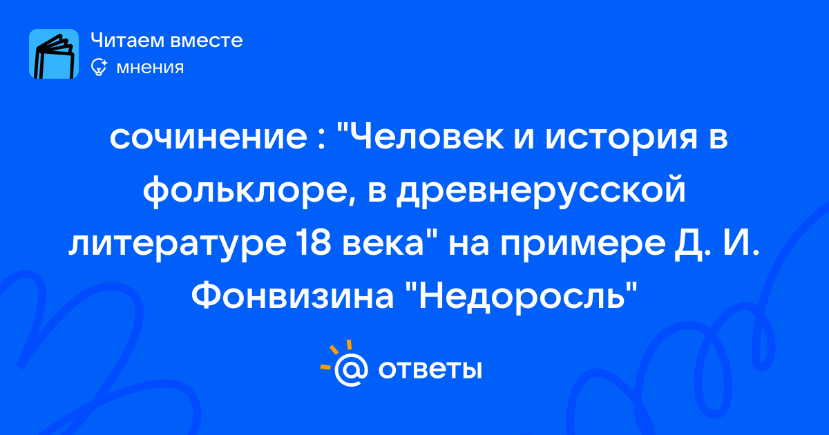 напишите сочинение на тему "Человек и история в фольклоре, в древнерусской литературе 18 века" на примере Д. И. Фонвизина "Недоросль"