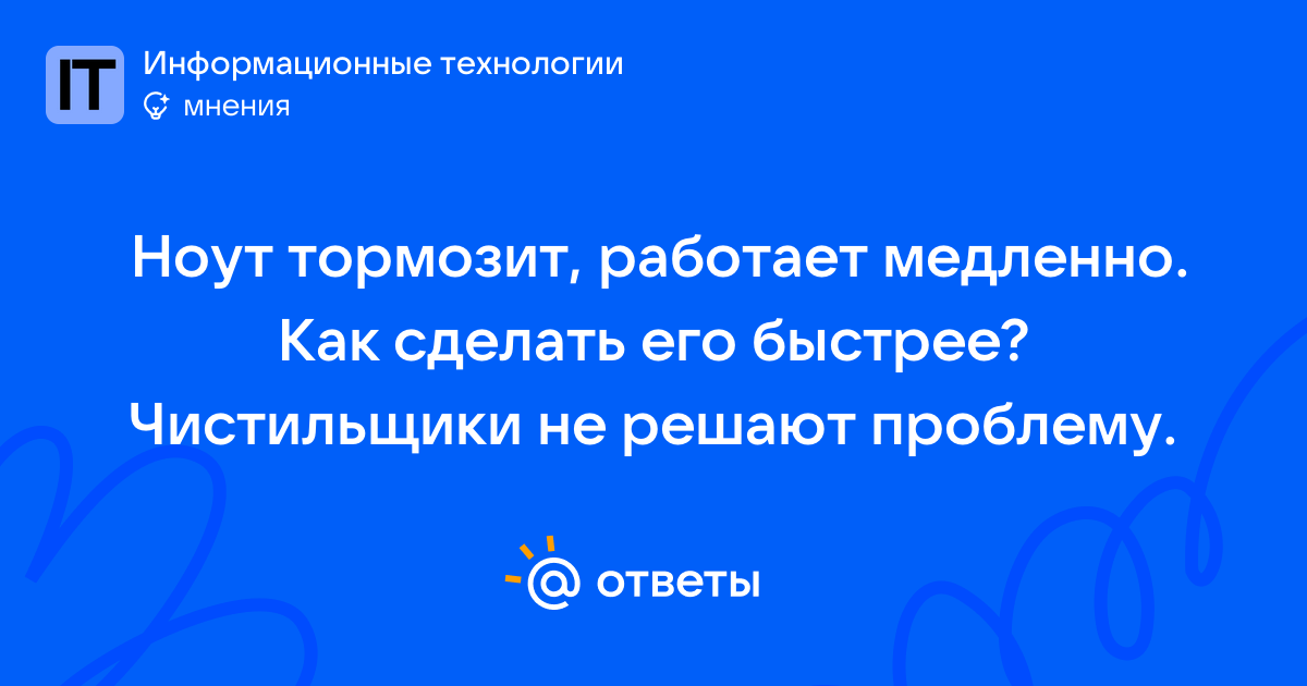 Ноут тормозит, работает медленно. Как сделать его быстрее? Чистильщики не решают проблему.