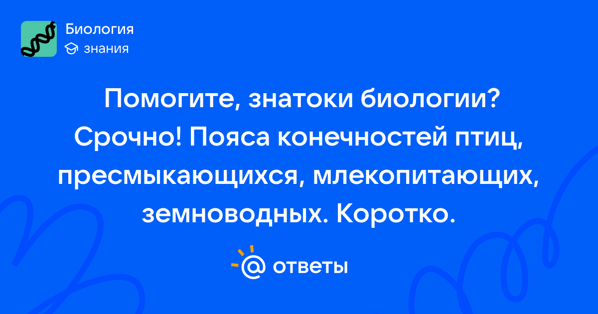 Помогите, знатоки биологии? Срочно! Пояса конечностей птиц, пресмыкающихся, млекопитающих, земноводных. Коротко.