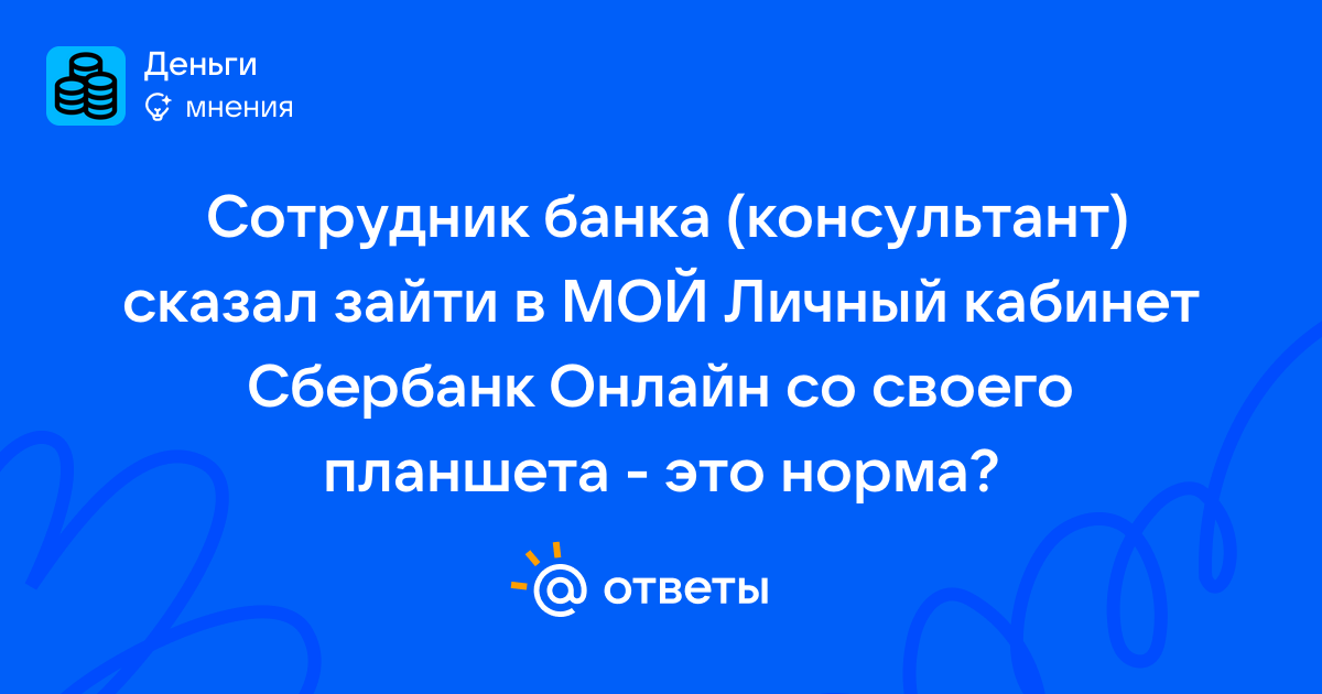 Сотрудник банка (консультант) сказал зайти в МОЙ Личный кабинет Сбербанк Онлайн со своего планшета - это норма?