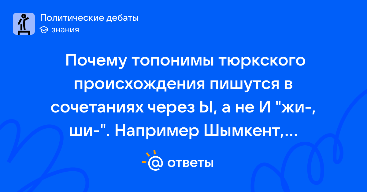 Почему топонимы тюркского происхождения пишутся в сочетаниях через Ы, а не И "жи-, ши-". Например Шымкент, Туркменбашы?