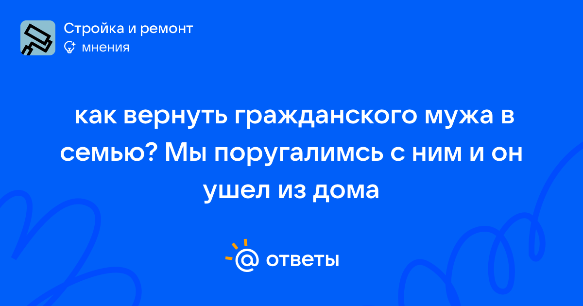 Как вернуть гражданского мужа в семью? Мы поругалимсь с ним и он ушел из дома