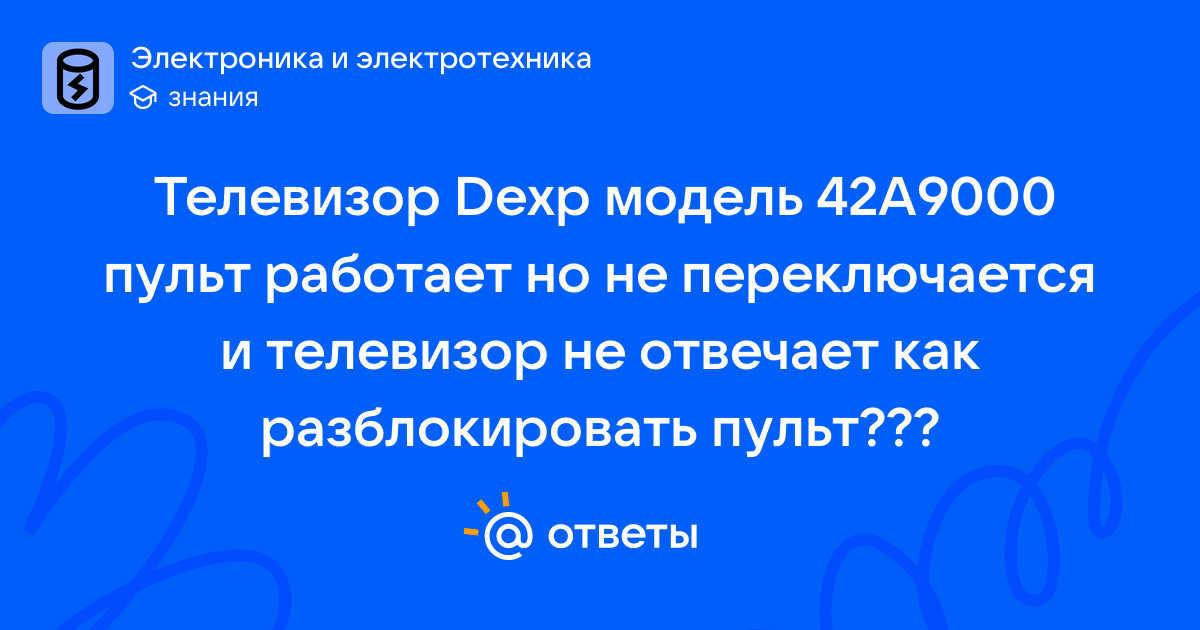 Телевизор Dexp модель 42А9000 пульт работает но не переключается и телевизор не отвечает как разблокировать пульт???