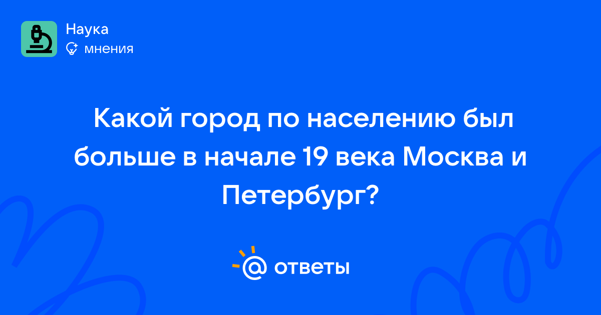 Какой город по населению был больше в начале 19 века Москва и Петербург? Если есть возможность, укажите ссылка на авторитетные работы и источник на эту тему? Пожалуйста!! Заранее спасибо.