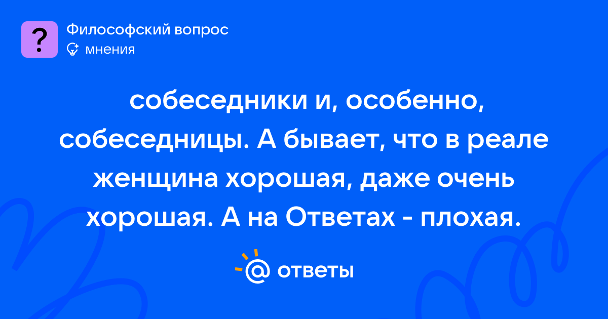 Собеседники и, особенно, собеседницы. А бывает, что в реале женщина хорошая, даже очень хорошая. А на Ответах - плохая.
