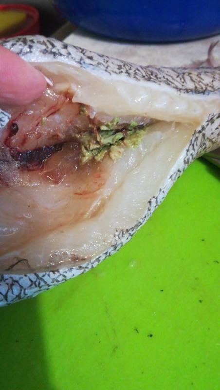 При разделке рыбы внутри обнаружили что то зелёное похожее на васаби