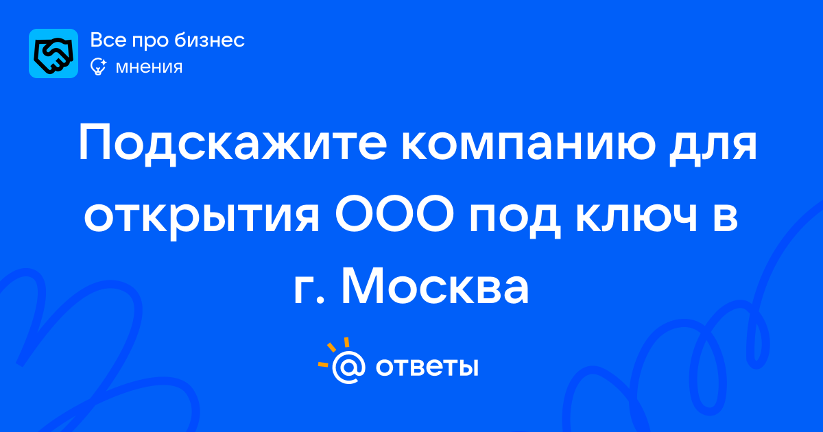 Подскажите компанию для открытия ООО под ключ в г. Москва
