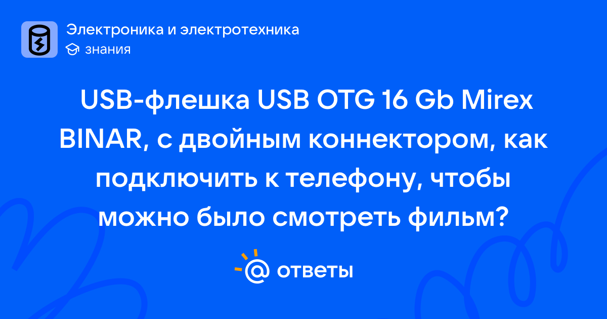 USB-флешка USB OTG 16 Gb Mirex BINAR, с двойным коннектором, как подключить к телефону, чтобы можно было смотреть фильм?