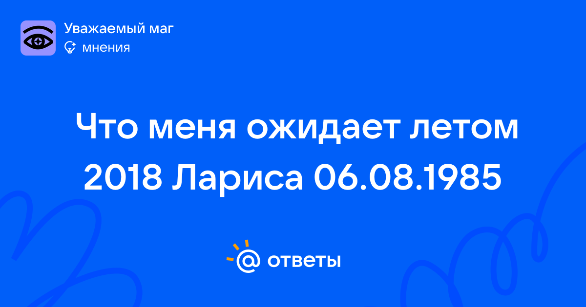 Что меня ожидает летом 2018 Лариса 06.08.1985