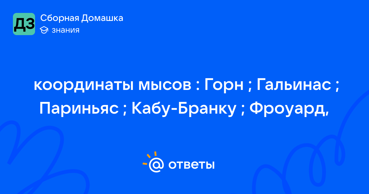 Координаты мысов : Горн ; Гальинас ; Париньяс ; Кабу-Бранку ; Фроуард,
