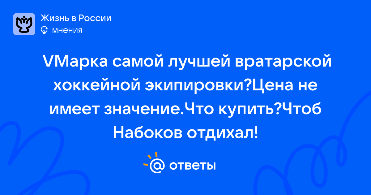 VМарка самой лучшей вратарской хоккейной экипировки?Цена не имеет значение.Что купить?Чтоб Набоков отдихал!