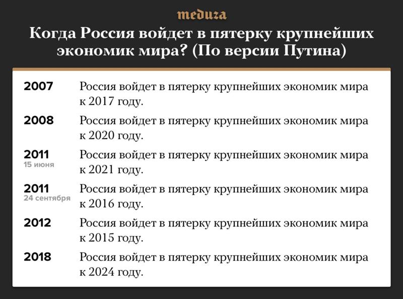 Таким образом влиятельный международный финансовый институт и один из ведущих поставщиков информации для финансовых рынков фактически признали выполнимость поставленных в одном из майских указов президента РФ Владимира Путина целей о вхождении нашей страны в число пяти крупнейших экономик мира к 2024 году. По мнению МВФ, это может произойти даже на год раньше обозначенного срока.