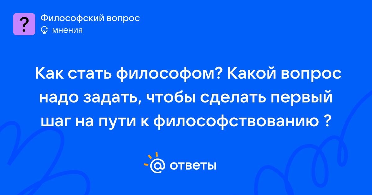 Как стать философом? Какой вопрос надо задать, чтобы сделать первый шаг на пути к философствованию ?