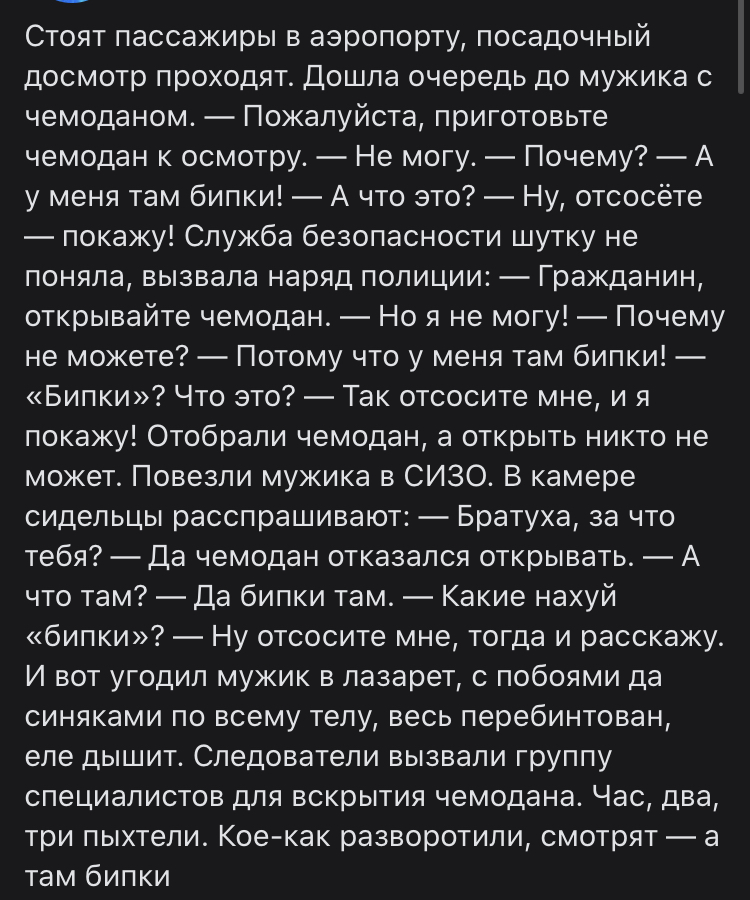 Что такое бипки из анекдота про досмотр в аэропорту?