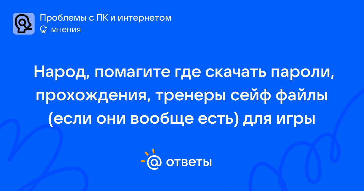 Народ, помагите где скачать пароли, прохождения, тренеры сейф файлы (если они вообще есть) для игры