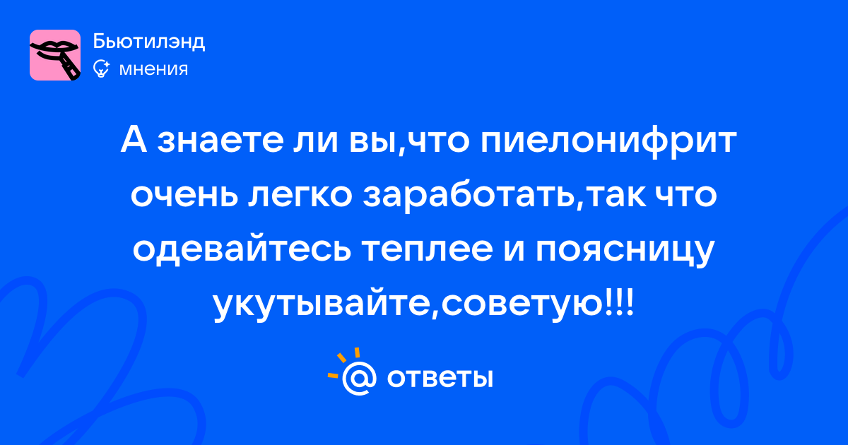 А знаете ли вы,что пиелонифрит очень легко заработать,так что одевайтесь теплее и поясницу укутывайте,советую!!!