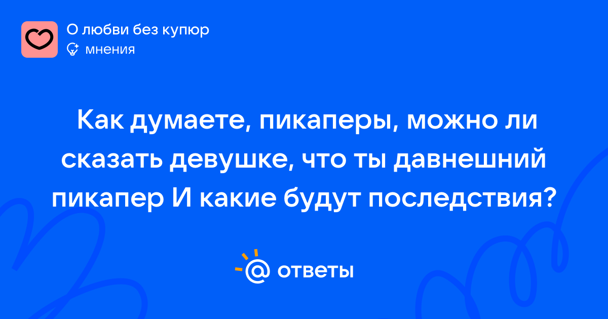 Как думаете, пикаперы, можно ли сказать девушке, что ты давнешний пикапер И какие будут последствия?