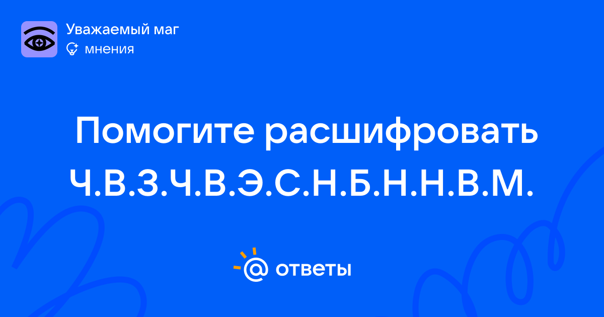 Помогите расшифровать Ч.В.З.Ч.В.Э.С.Н.Б.Н.Н.В.М.