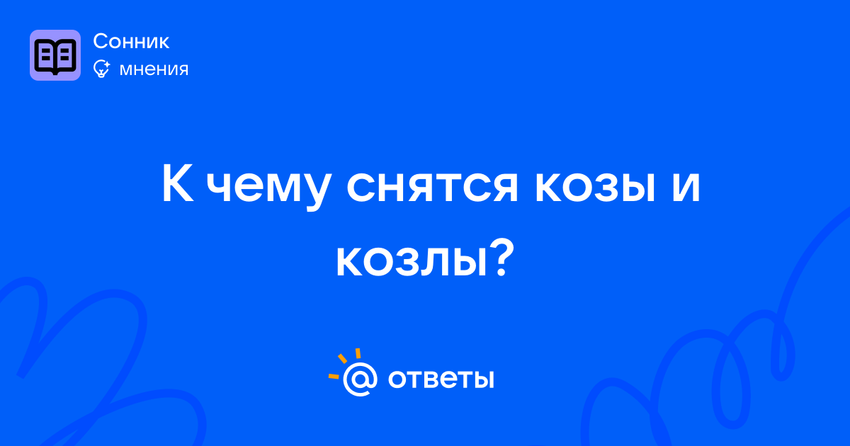 Козел - твой грех \\ некий злой дух \\ тебя ожидает наваждение. Бодливый козел - неприятности. Пасти козла - много неприятностей. Блеющий козел - сластолюбивый или пакостный старец. Страх перед козлом, бегство от него - сны-фобии, вызванные определенными изменениями в твоей сексуальной сфере. Ездить верхом на козле - жить в скверне. Вести козла на веревке - напрасно обольщаться относительно чистоты твоих помыслов. Гнать козла - страшиться того, что скрыто в твоем подсознании. Говорящий козел - твой злой двойник, противоЯ.