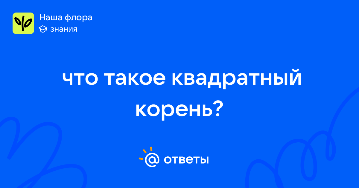 Квадратный корень из числа а — это такое число, квадрат которого (результат умножения на себя) равен а, то есть решение уравнения х (в квадрате) =а относительно переменной х.