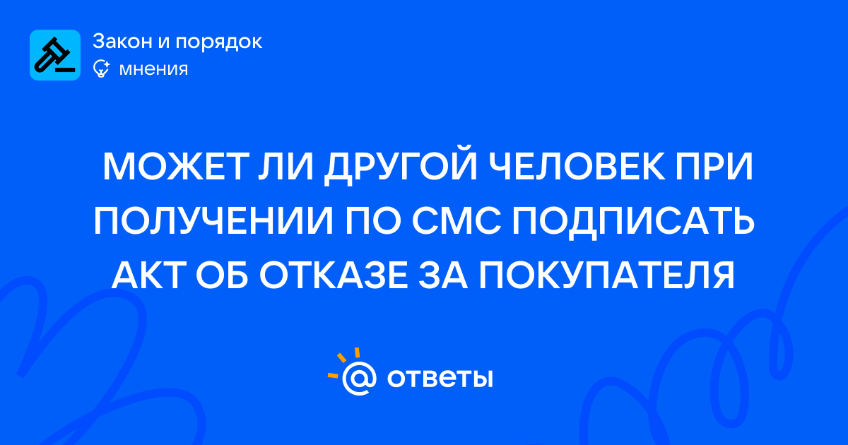 МОЖЕТ ЛИ ДРУГОЙ ЧЕЛОВЕК ПРИ ПОЛУЧЕНИИ ПО СМС ПОДПИСАТЬ АКТ ОБ ОТКАЗЕ ЗА ПОКУПАТЕЛЯ
