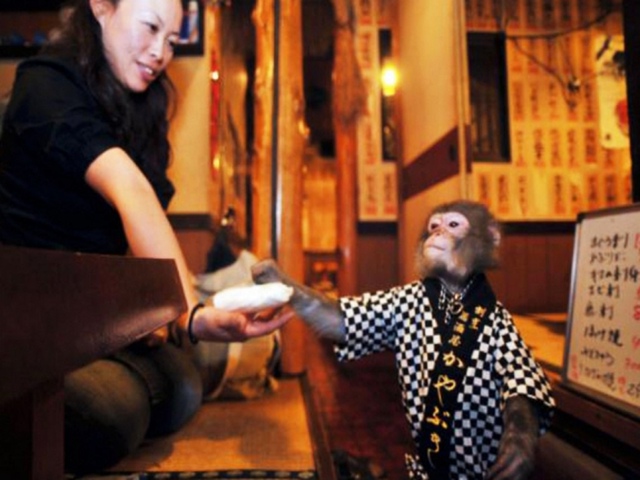 Обезьянки выполнят любую твою прихоть. Все они очень умные! Владелец ресторана Kayabukiya Tavern специально обучал обезьян мастерству обслуживания. Местные власти тоже оказались не против таких официантов и разрешили обезьянам работать здесь официально. Вместо чаевых клиенты часто угощают животных соевыми бобами.