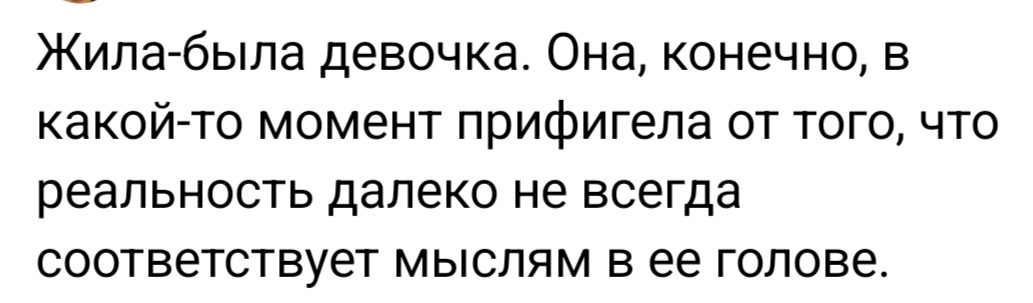 Жила была девочка, и она, конечно, в какой-то момент прифигела от того, что реальность не такая, как в ее голове.