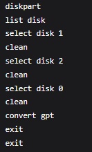 Вскоре с помощью дипсика я смог очистить, отформатировать диски с помощью этих команд: