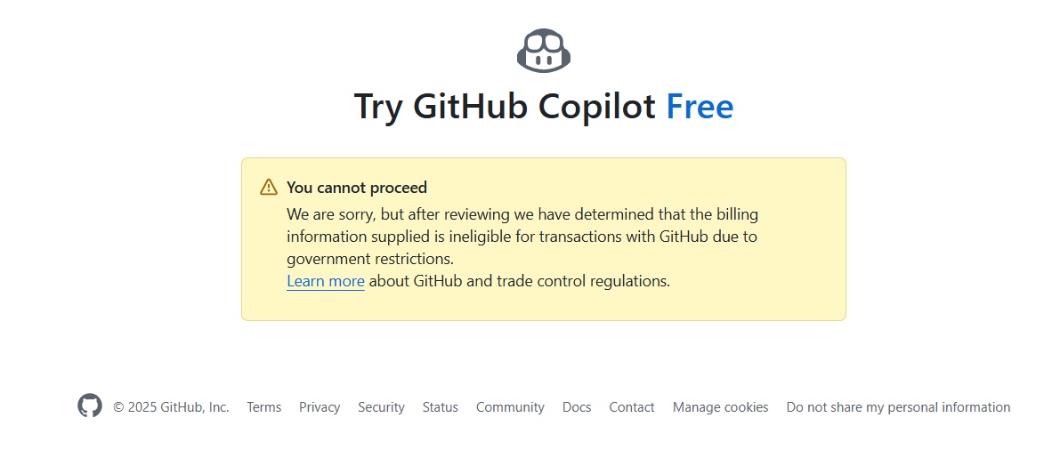 Проблемы с получением Github Copilot в России