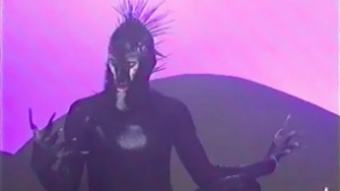 Мем где человек в латексном костюме с шипами, который боялся света сначала пел песню ( Он как-то себя еще называл, человек тень, или мистер тень, что-то такое). Потом двое мужчин начали светить на него фонариком, а он начал смешно извиваться и издавать звуки. Это из какого-то зарубежного фильма старенького или сериала. Относительно недавно, часто попадались мемы с этим фрагментом.