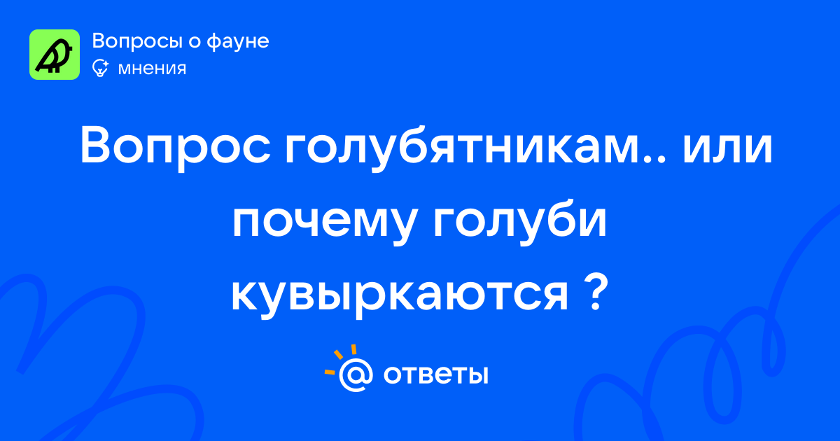 Напортив нашего дома была голубятня.. И там, среди обычных голубей были кувыркуны.. Я знаю конечно, что это такая порода и все такое... Но животные (и птицы) без причины ничего не делают.. Почему кувыркаются голуби?