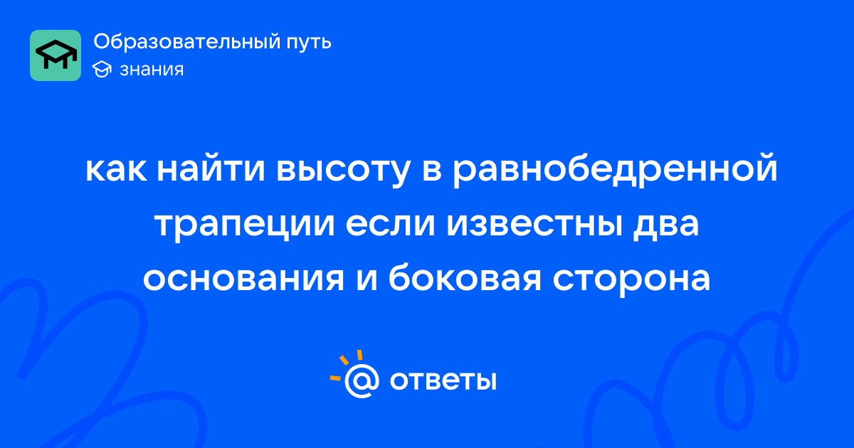 Как найти высоту в равнобедренной трапеции если известны два основания и боковая сторона