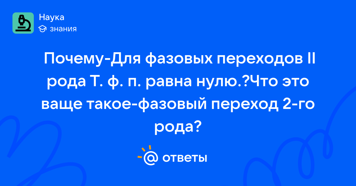Почему-Для фазовых переходов II рода Т. ф. п. равна нулю.?Что это ваще такое-фазовый переход 2-го рода?