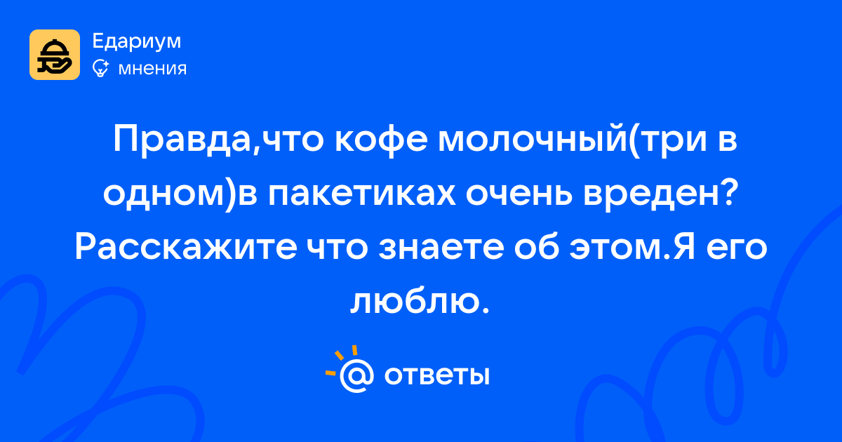 Правда,что кофе молочный(три в одном)в пакетиках очень вреден? Расскажите что знаете об этом.Я его люблю.