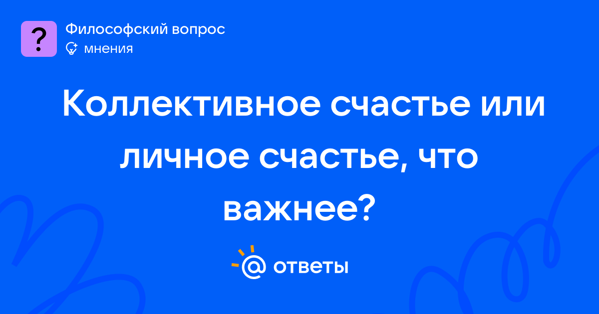 Лучше личное, ну и еще кого нибудь счастливым сделать. А коллективное счастье- это утопия, такого не бывает)))