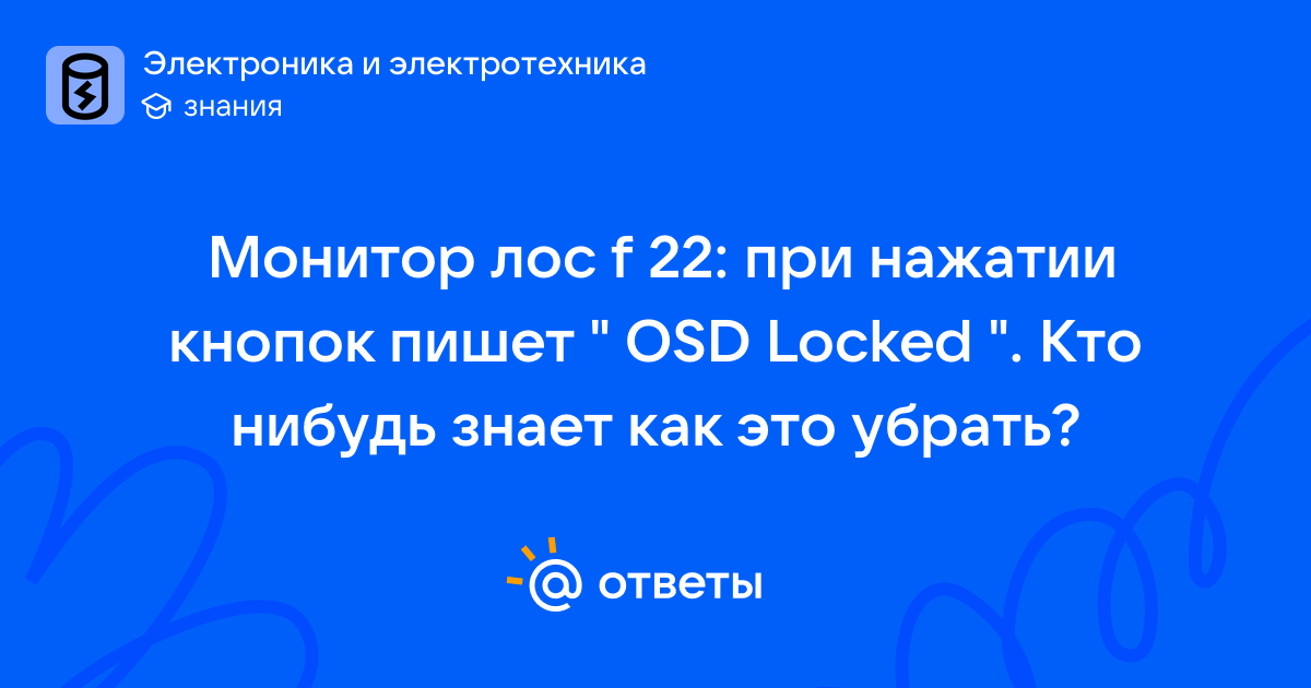 Монитор лoc f 22: при нажатии кнопок пишет " OSD Locked ". Кто нибудь знает как это убрать?