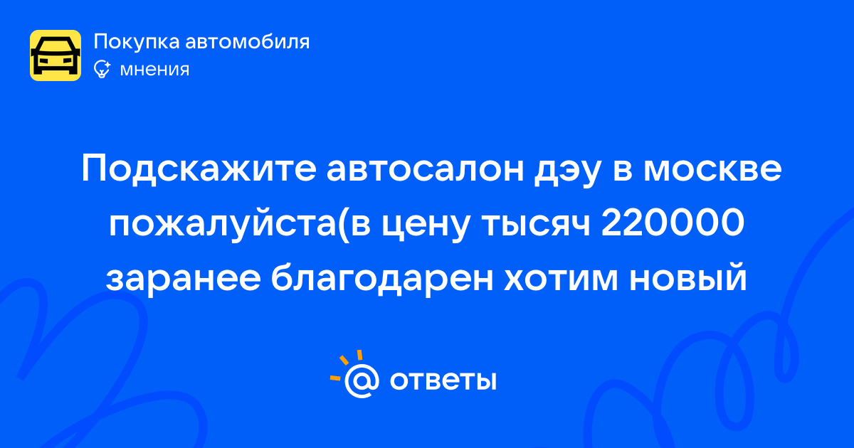 Подскажите автосалон дэу в москве пожалуйста(в цену тысяч 220000 заранее благодарен хотим новый