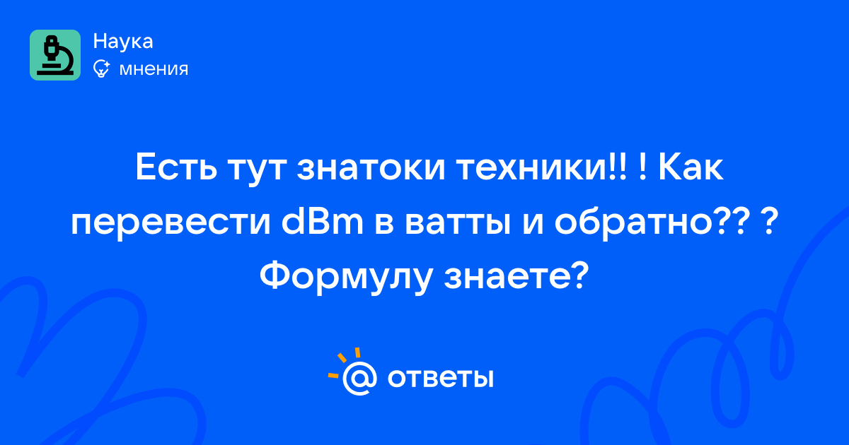 Есть тут знатоки техники!! ! Как перевести dBm в ватты и обратно?? ? Формулу знаете?